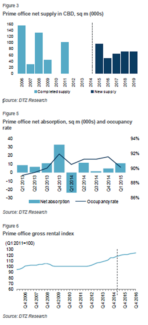Office supply in Bangkok continued to be limited during the first quarter of 2015, according to real estate firm DTZ.