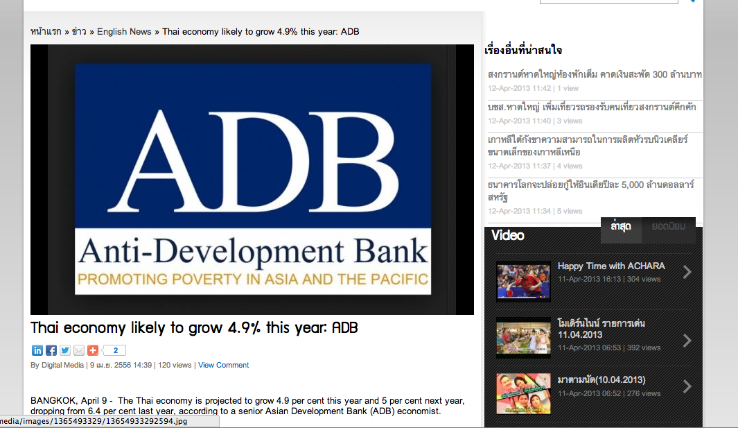 MCOT published this story recently about the Asian Development Bank (ADB)’s economic growth forecasts for Thailand, in which it employed a…”questionable” graphic to illustrate the well-known financial institution.