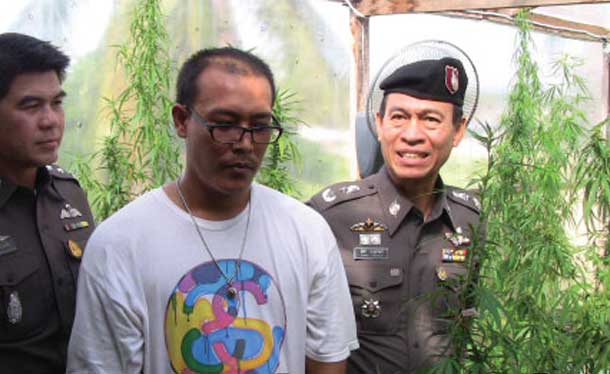 Pattaya police raided a marijuana growing operation and arrested Nataphol Phathanapratipluk, 29, recently after an informant tipped them off.