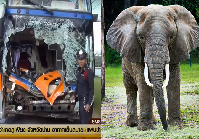 Police came to the crash site on Friday night to see a tour bus that had collided with an 8-year-old elephant on the street. The elephant was dead. The driver was injured but his 20 passengers were not hurt in the accident.