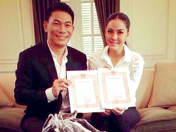 Aside from the legal scandal, the drama about Janie’s abrupt marriage loomed large in the Thai media today. Earlier today Janie, who arrived at the press conference with a seven-karat diamond ring, announced that she was tying the knot with Chonsawat.