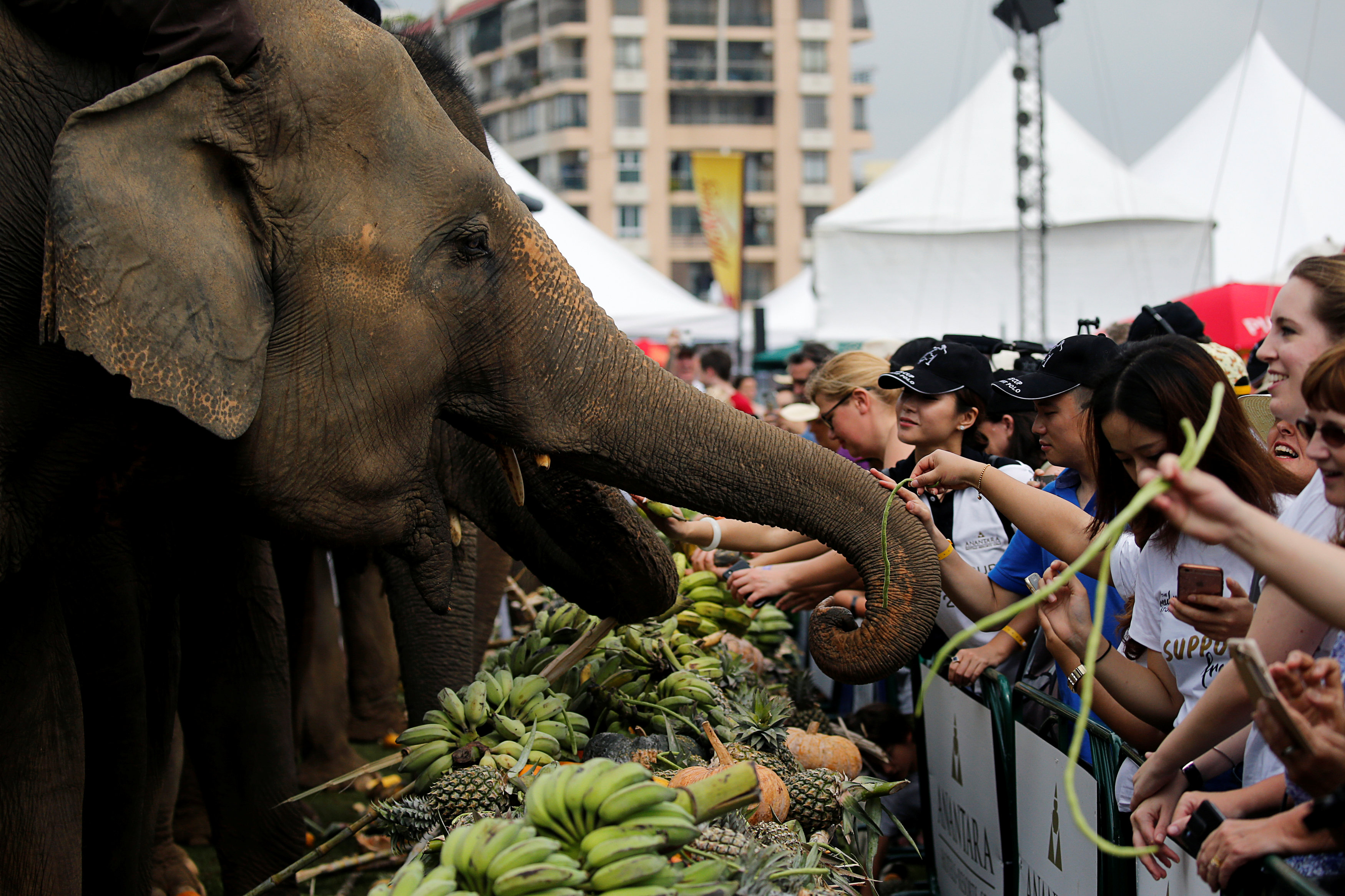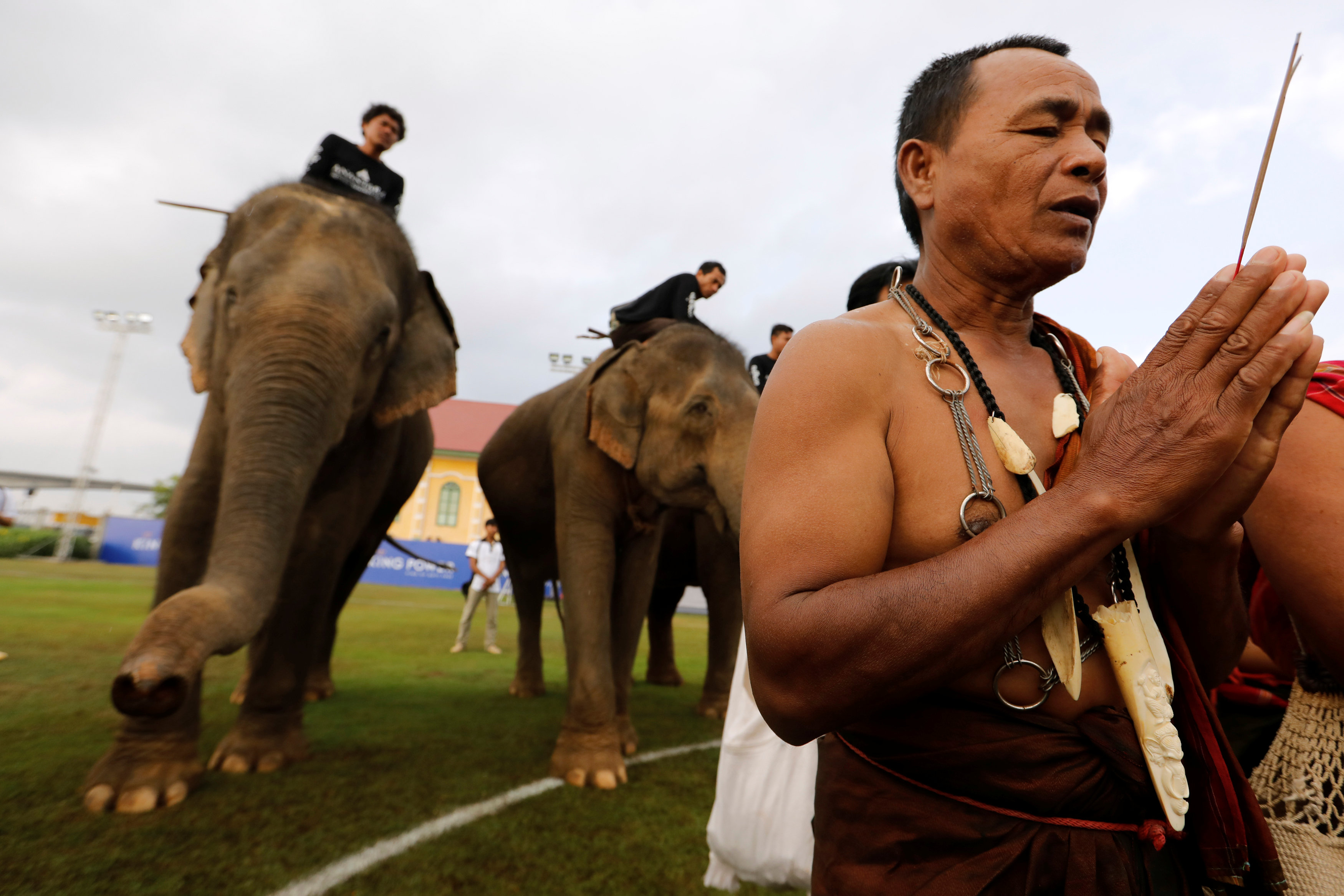 About 30 elephants took part in the opening of Thailand’s annual elephant polo tournament in Bangkok on Thursday.