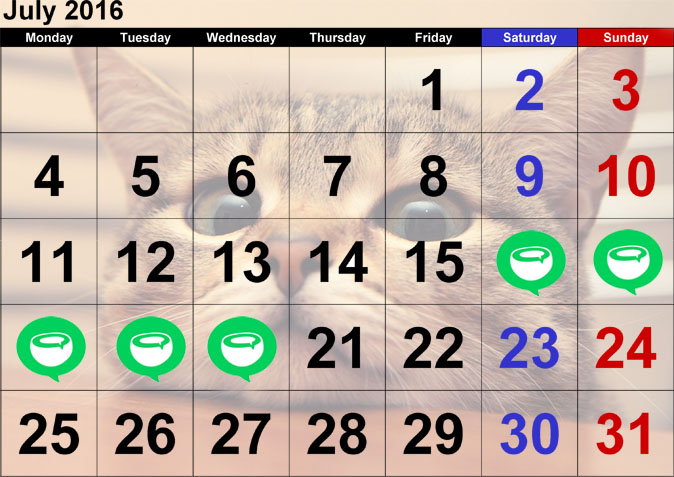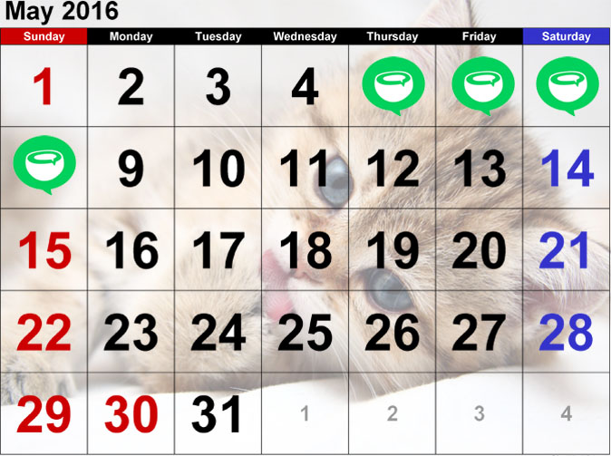 Check out the kitty calendar to avoid confusion.
