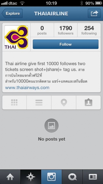 “Thaiairline” promised to give away two free tickets to the first 10,000 followers who posted a snap shot of their account profile. “Thaiairasia” pledged to shell out two free tickets to the first 20,000 if the users did the same.