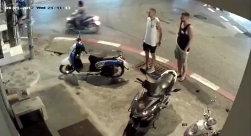 “Anan said that he had left the key in the motorbike. When he came out, his motorbike was gone. So he checked the CCTV for the building and saw that two foreigners had turned up outside his shop at about 10pm,” explained Col. Somsak Thongklieng of the Patong Police.