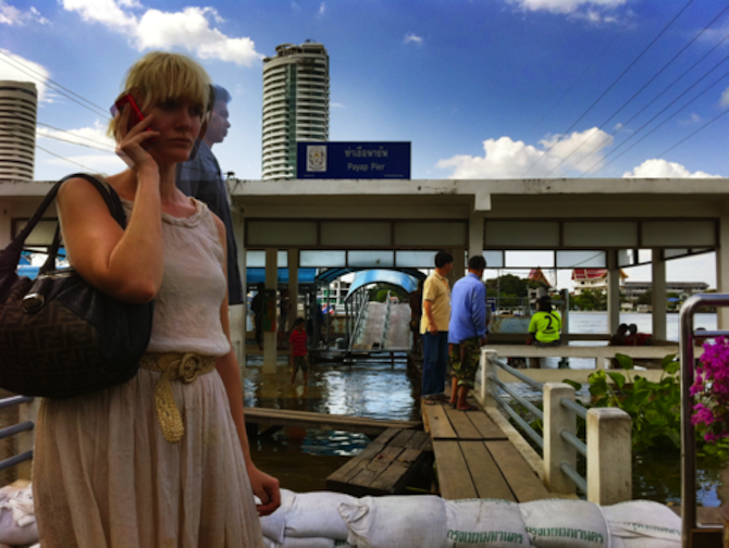 Ever mindful of the fact the the great Thailand Floods of ’11 are a real catastrophe, Bangkok expats Joshua Johnson, Brock Kuhlman, Gaby Doman, and Becky Wicks have been setting up photo shoots around town featuring the chicest of flood apparel. A little humor goes a long way during tough situations, and hey, everyone’s doing it.