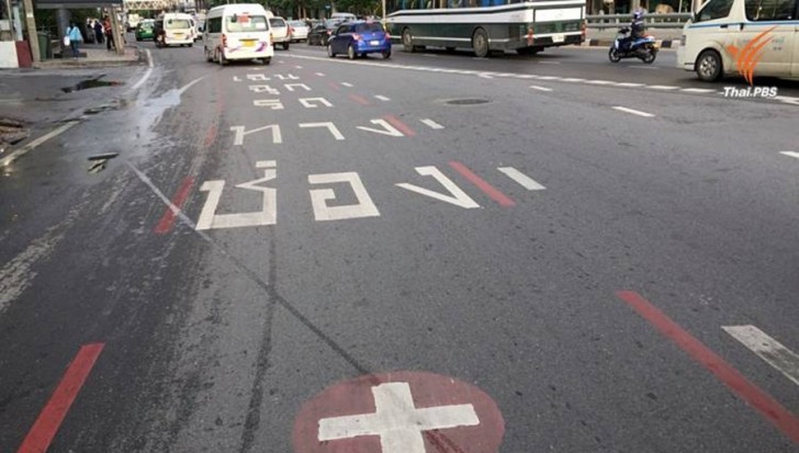 You can see the emergency lane by its marking of broken red lines with white crosses in red-painted circles, reported Thai PBS.