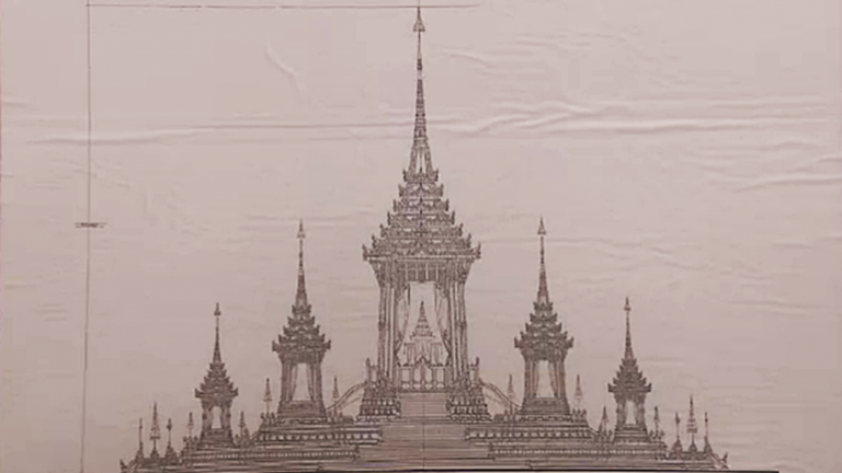 The pyre design boasts a seven-tier roof and spire to be erected at Sanam Luang. It will stand just over 50 meters high, reported Thai PBS.