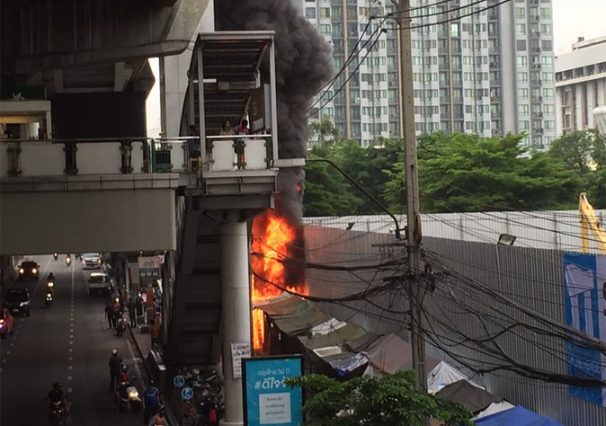 A small fire near BTS On Nut this morning caused train service in the area to stop for a short time during rush hour this morning. Thankfully, no one was hurt but the cause of the fire is unknown.