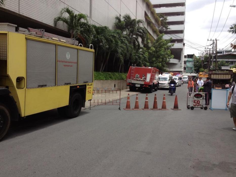 Initial reports said that the blaze started on the first floor, and that shoppers and people in a nearby hotel (perhaps the Shangri-La?) were evacuated while firemen went to work extinguishing the blaze.