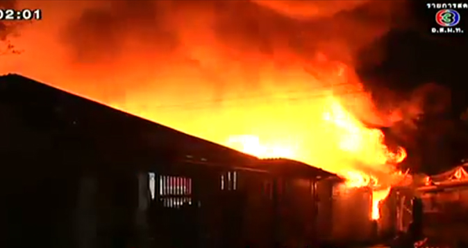 Flames reportedly spread quickly in the Thanin Community, where houses are built close to one another. Locals frantically rushed out of their homes as flames spread in the neighborhood, which is home to nearly 100 households.
