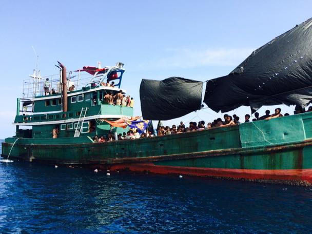 TOP: Migrant boat discovered off of Koh Lipe on Thursday. Photo: AFP
