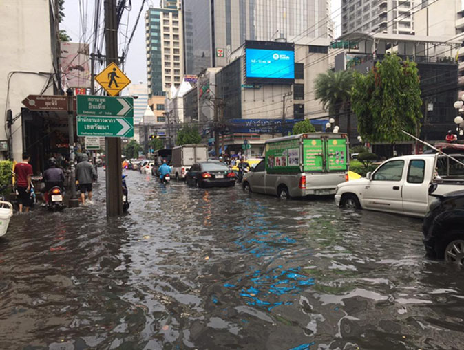 Several streets and locations turned into canals today after the atmosphere above Bangkok went totally liquid around noon.