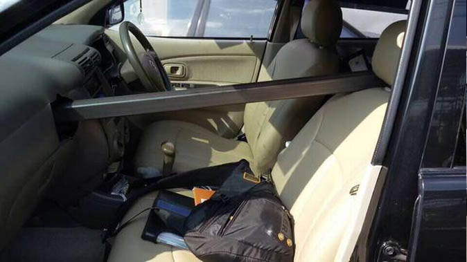The pipe flew between the two car seats, so the driver Watthiraporn Phrompongsri escaped uninjured, thank heavens.