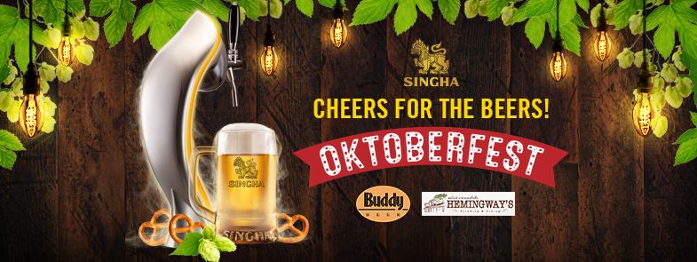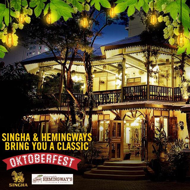 Singha’s special Oktoberfest Happy Hour is on now until October 20 at Hemingway’s (across from Terminal 21). Singha draught is a celebratory 100 THB a pint every day until 8pm.