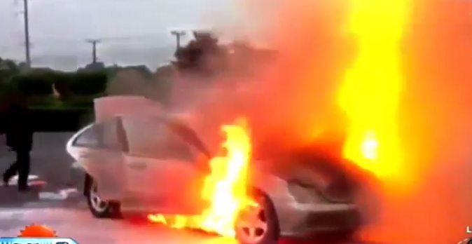 The couple quickly pulled over and jumped out of the vehicle just before it burst into flames.