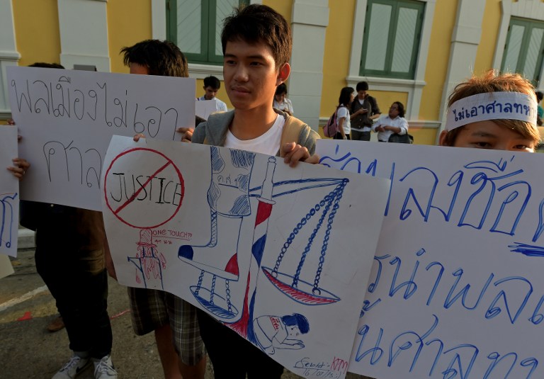“This is harming our human rights. We don’t want people to be tried in a military court,” economics student Sukrid Peansuwan, 21, told AFP at the campus rally.