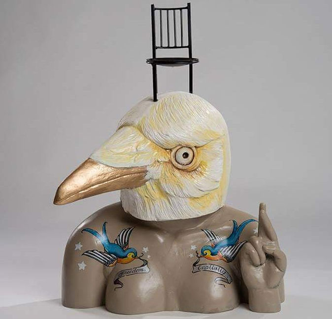 Pimpisa sees her sculptures as childish but the message of her work reflects our daily lives. For example, a human body with a bird’s head illustrates freedom as birds are symbols of freedom and humans have free will.
