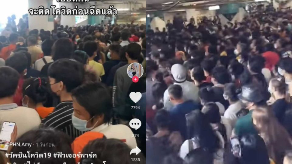Since Saturday, videos and photos went viral showing crowds queueing in the Future Park Rangsit department store in Pathum Thani at an event organized by the provincial government for residents to receive a dose of Sinopharm.