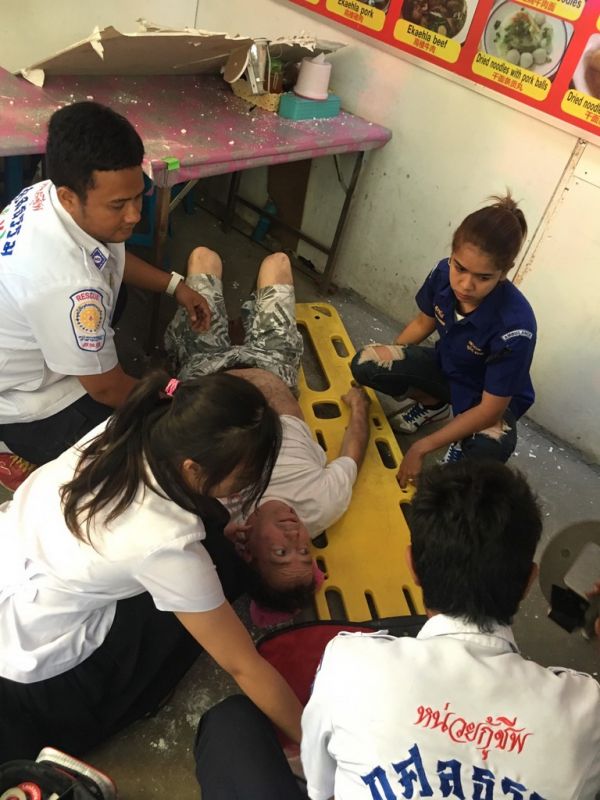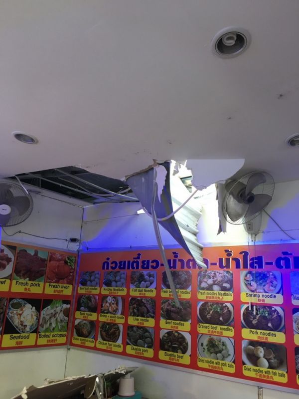 Police arrived at the scene with Kusoldharm rescue workers to find German national Bernhard Schartl, 53, on the floor inside the noodle shop. Above him was the hole in the ceiling that he had just plunged through.