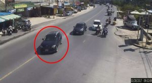 Tuesday morning, Chalong Police were informed that a car heading towards Chalong had ran a red light at the junction for Sun Palm Village on Chao Fa East Road.