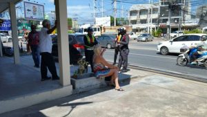 A German woman is currently being held at Phuket Provincial Court where she is awaiting trial after being stopped by police when she ran a red light in Chalong and proceeded to have a long phone chat, yell at officers, empty her purse into a potted plant and throw her keys onto a nearby roof.