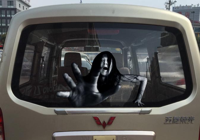 The Department of Land Transport has warned Thai netizens not to put up the ghostly stickers seen on Chinese social media because they may scare the living hell out of other motorists and cause an accident.