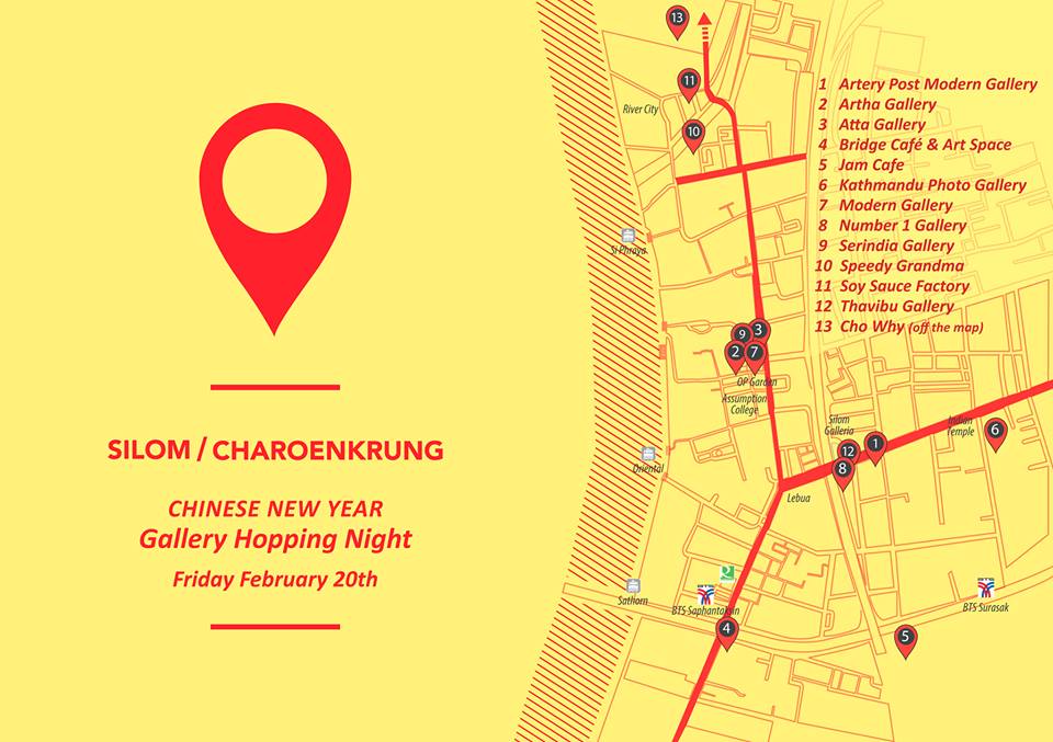 After its first outing in December, the event has expanded to include 13 galleries and art spaces this Friday night along Silom and Charoen Krung roads to mark the new beginning of Year Goat with closing hours extended until at least 11pm.