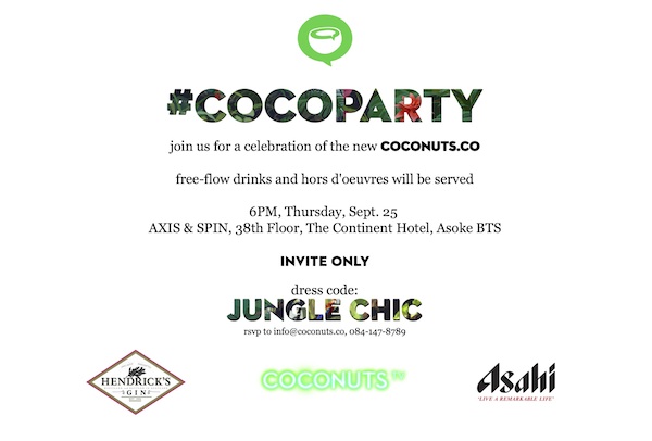 Coconuts Media will host a #COCOPARTY celebrating the launch of the new Coconuts.co and the third anniversary of Coconuts Bangkok on Sept. 25.
