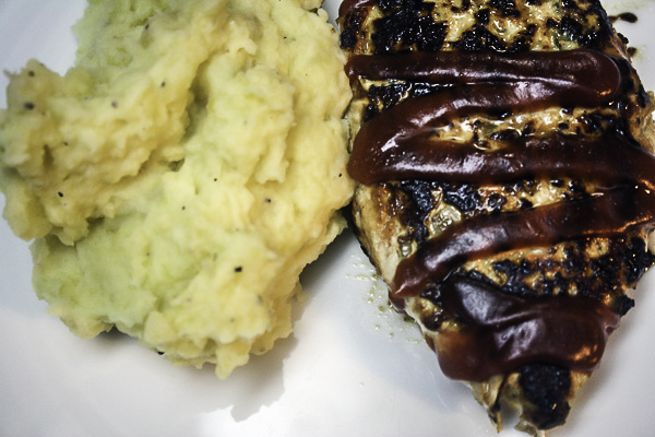 The potatoes will take longer to cook so get started on these puppies first. Wash, peel (or don’t peel if you prefer) and chop into 2-3” pieces. Throw into a pot of cold water with a healthy sprinkle of salt. Turn on high and allow to boil about 20 minutes, or until tender with a fork