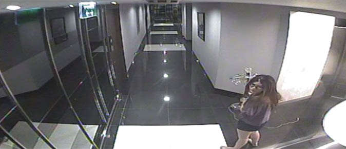 In the video, posted by the victim’s family, a man in a guard uniform enters a room on the 42nd floor at 5:50 minute mark. Fifteen minutes later the woman who lives there runs out of her room in panic, holding a nightstand lamp, before going down to seek help at the lobby.