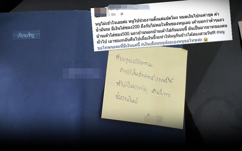This story, which received attention on Facebook, comes from the wedding guest who posted a photo of the sarcastic note she received from the bitchy bride, condemning her for only giving them THB200 cash for the wedding.