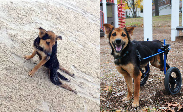 First Penman called several local dog shelters but discovered none could support a paralyzed puppy. A trip to the vet discovered his back was broken, and there was no hope for him to walk with his hind legs again.