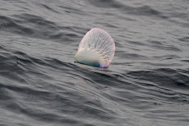A few things to note about Portuguese man o’ war, according to the U.S. National Ocean Service: they can’t swim, they are propelled by waves and wind. So, if you see one in the water, it’s going to move in the direction of the waves. They can float in packs so, if you see one, you’ll likely see more.
