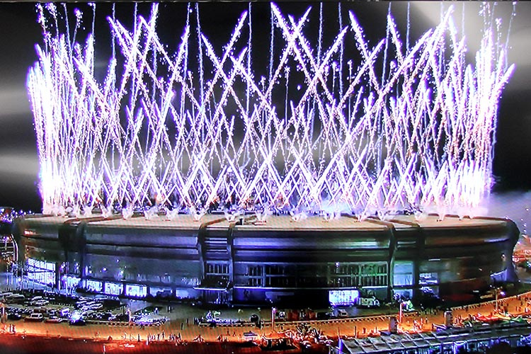 Fireworks exploded above the 30,000-seat, purpose-built Wunna Theikdi stadium and a wall of screens beamed majestic Myanmar landscapes and intricate animations during the Chinese-backed extravaganza in the country’s capital Naypyidaw.