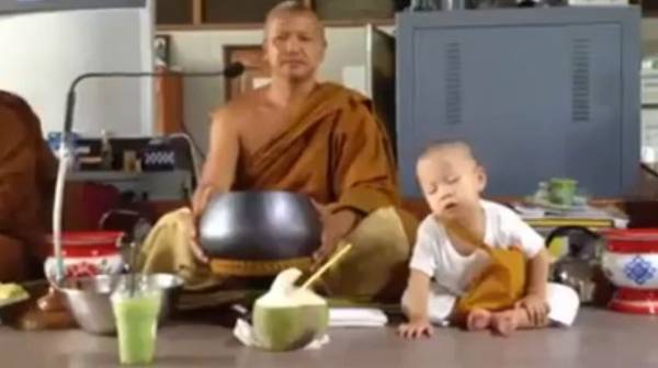 After that, the toddler has a morning nap and will wake up for merit-making at noon, when the video was probably filmed.