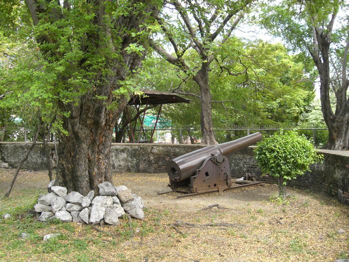 The Phlaeng Faifaa Fort is located next to the Pom Plaeng Faifa School in Samut Prakan province.