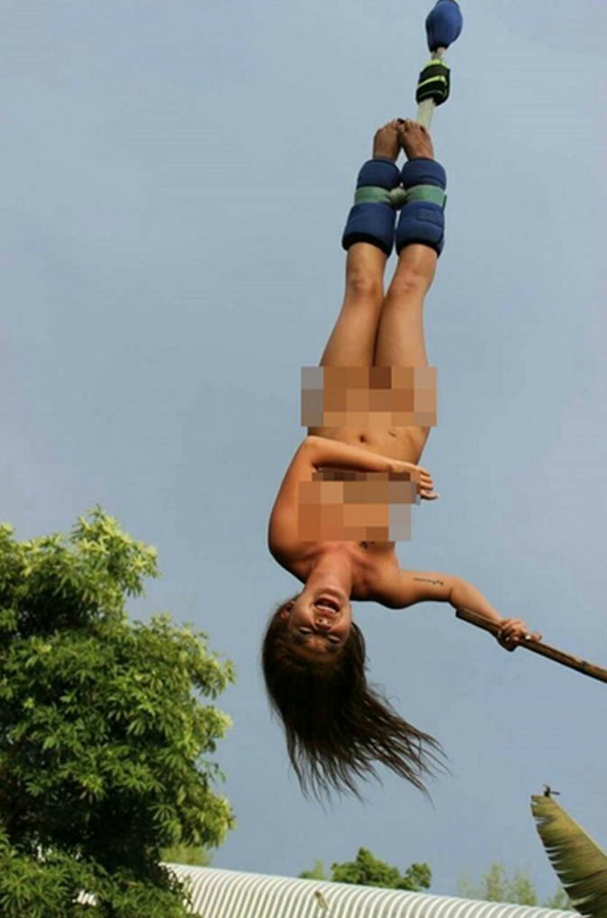 When police in Mae Rim heard a pretty young woman was naked at X-Centre Bungee Jump today, they rushed to the scene, only to find the video and photos of the naked tourist spread online were already a week old.