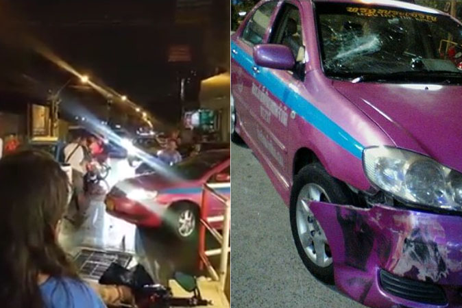 Facebook user Chanon Saetang shared a video of the incident which occurred around 11:30pm last night at Pracha Rat ฺฺBampen junction, writing that the pickup truck owner stabbed his knife into the taxi’s windshield, injuring the cabbie.