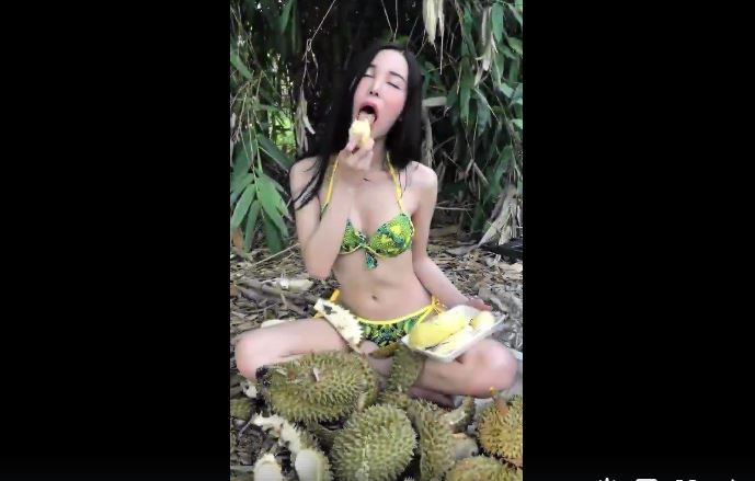 A clip of a hot trans woman slicing open a durian, eating it, smearing it on her bikini-clad body, and giggling has gone viral in Thailand.