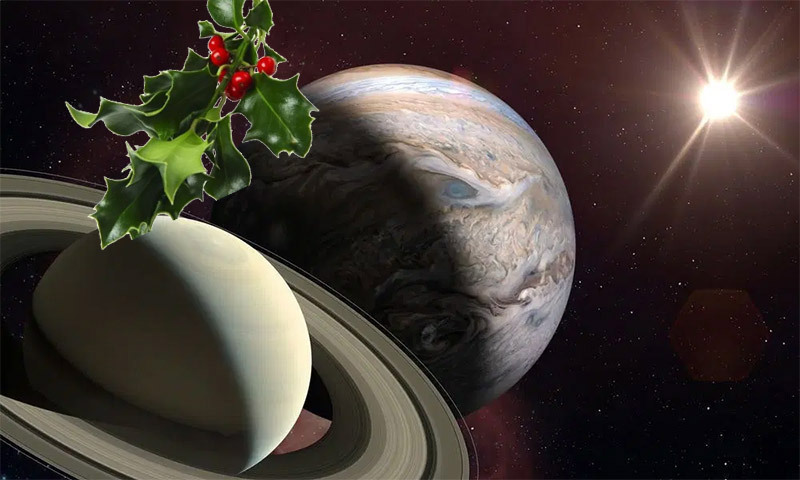 Nonetheless, the two giants on Monday evening will be locked together only 0.1 degree apart, thus forming a “double planet” effect that will shine as a brilliant and bright white orb. Taking place on the Winter Solstice, it’s also the longest night of the year.