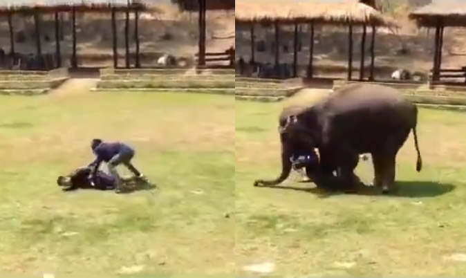 When he saw his buddy getting his ass kicked, this elephant immediately ran in to protect his human.