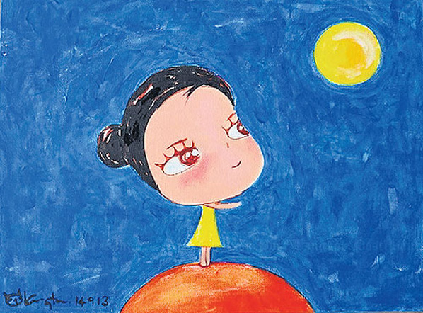 Works by Bangkok graphic designer-turned-artist Pakinee “Kingtun” Rattana are one display at the Bangkok Art & Culture Centre. She traded the tablet pens and computer mice for paintbrushes to depict emotions and thoughts. Her stories express a sunny outlook through comical drawings of girls and cats.