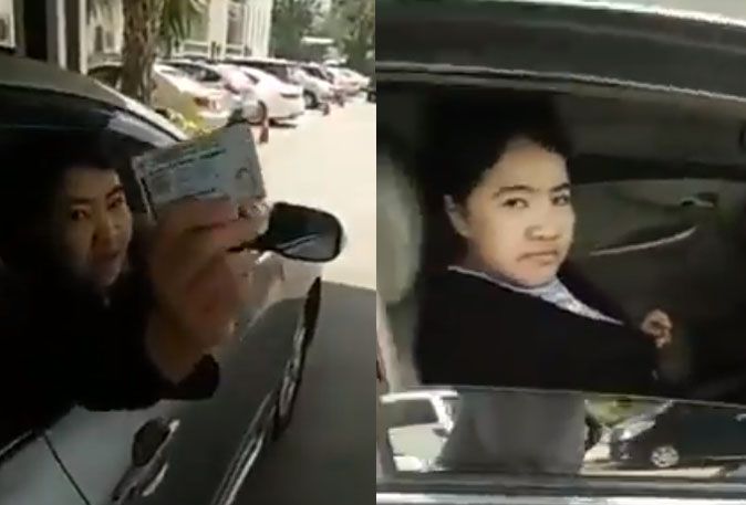 The video shows Chidchanok stomping around in anger, throwing a water bottle and yelling at bystanders after she got a parking ticket.