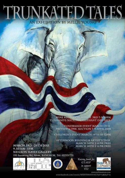 Neilson Hays Library will showcase Millie Young’s “Trunkated Tales” paintings next month. Mille has been painting elephants in Thailand for 15 years.