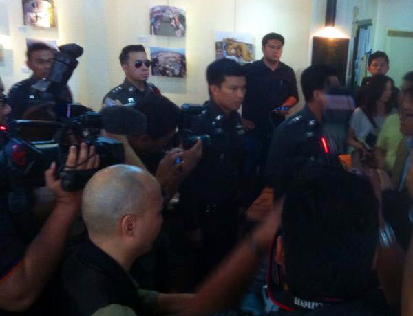 ABOVE: File photo of police entering the Foreign Correspondents Club of Thailand on Sept. 2, 2014, to request the cancellation of a human rights panel discussion. Photo: @Steve Herman