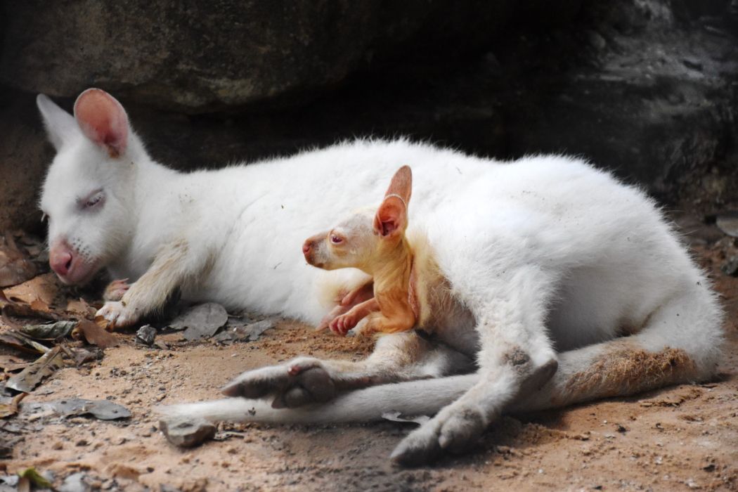 Acting Khon Kaen Zoo Director, Thanachon Kensingh, said the male white wallaby used to hide in his mother’s pouch but over time he has become more independent.