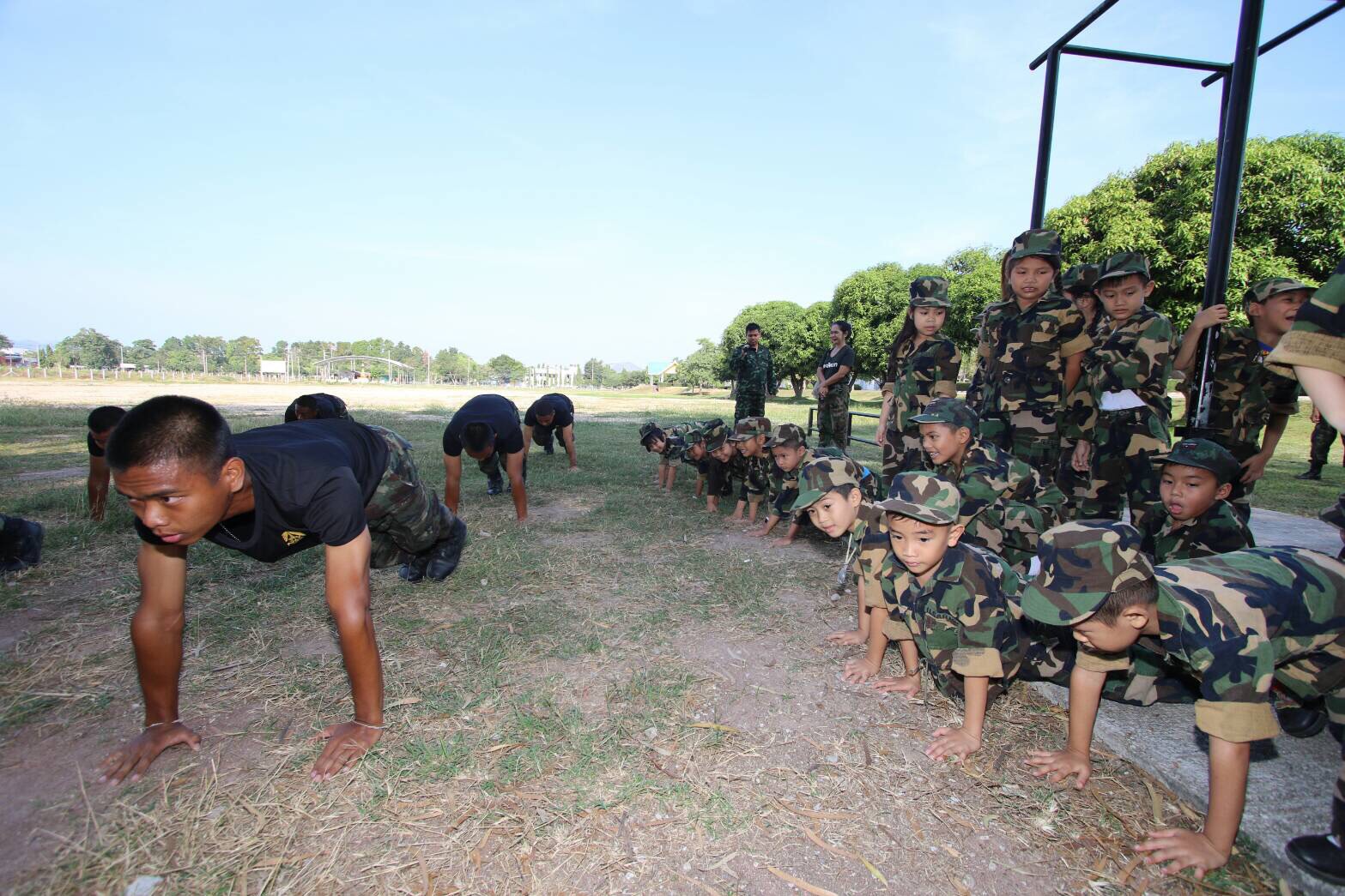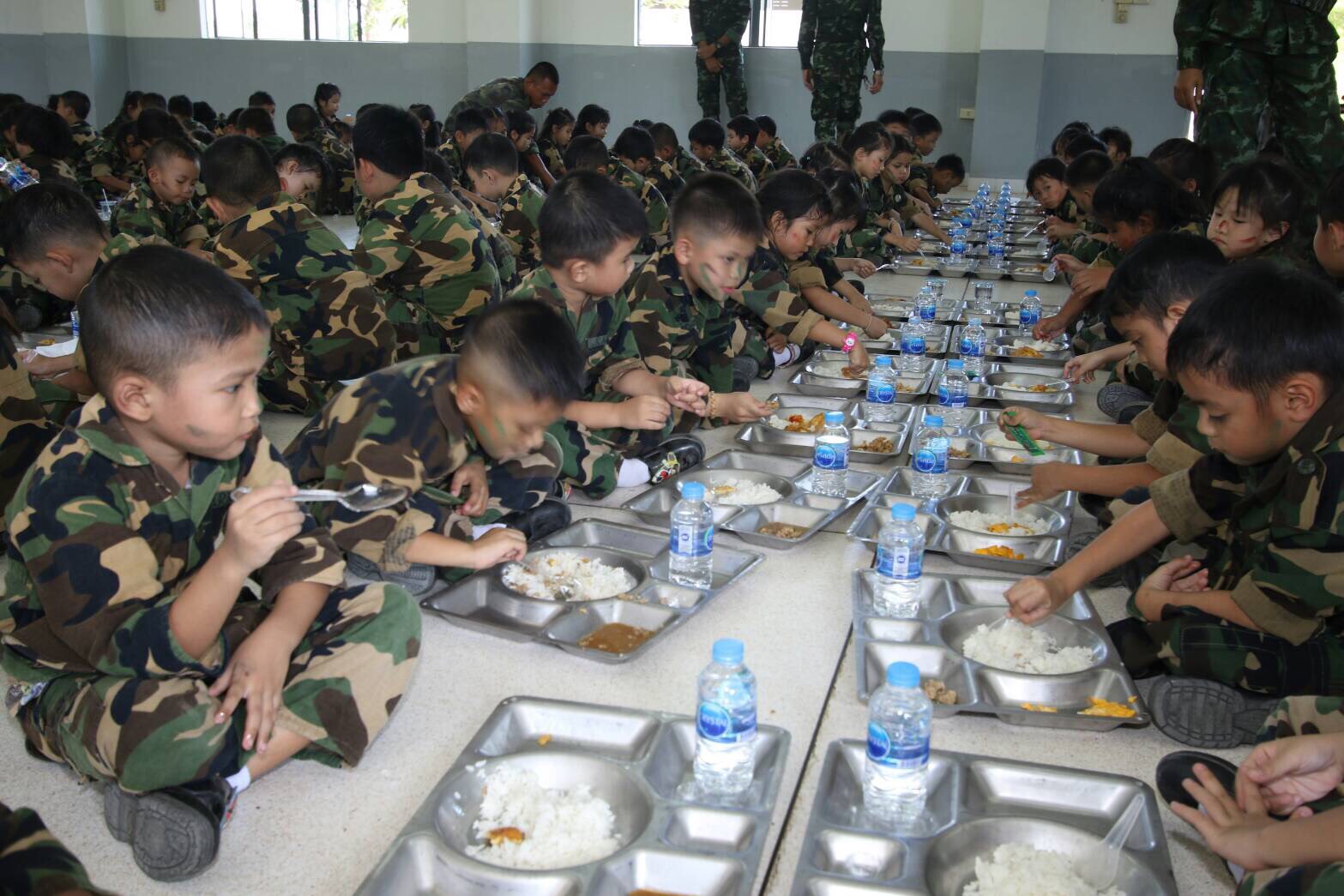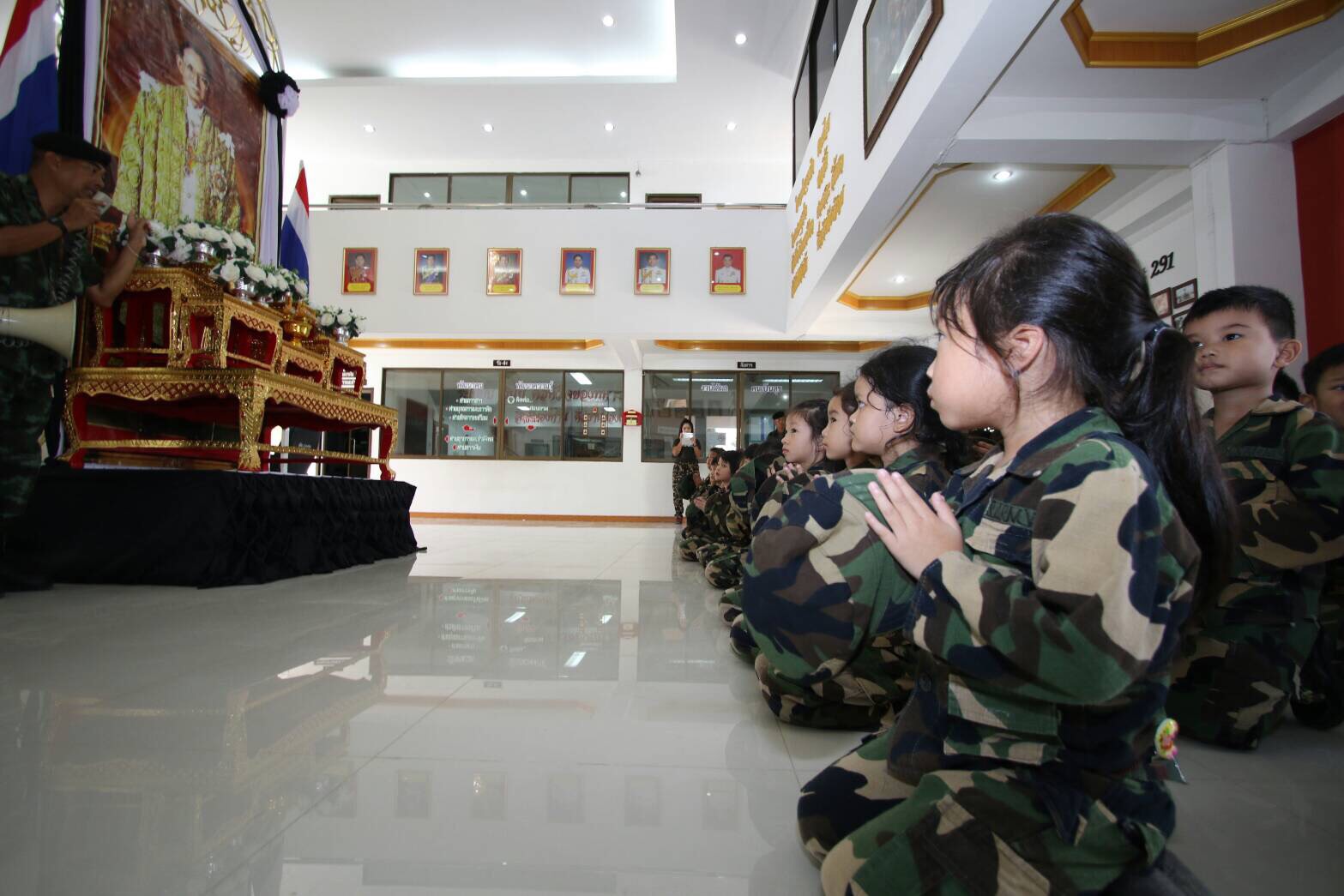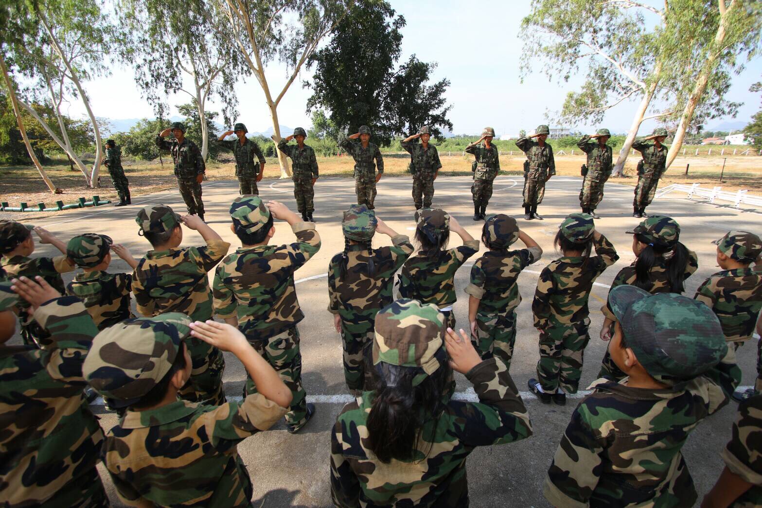 Almost two hundred kindergarteners visited a military base Wednesday and learned a thing or two about military principles and “Thai values.” Yikes.