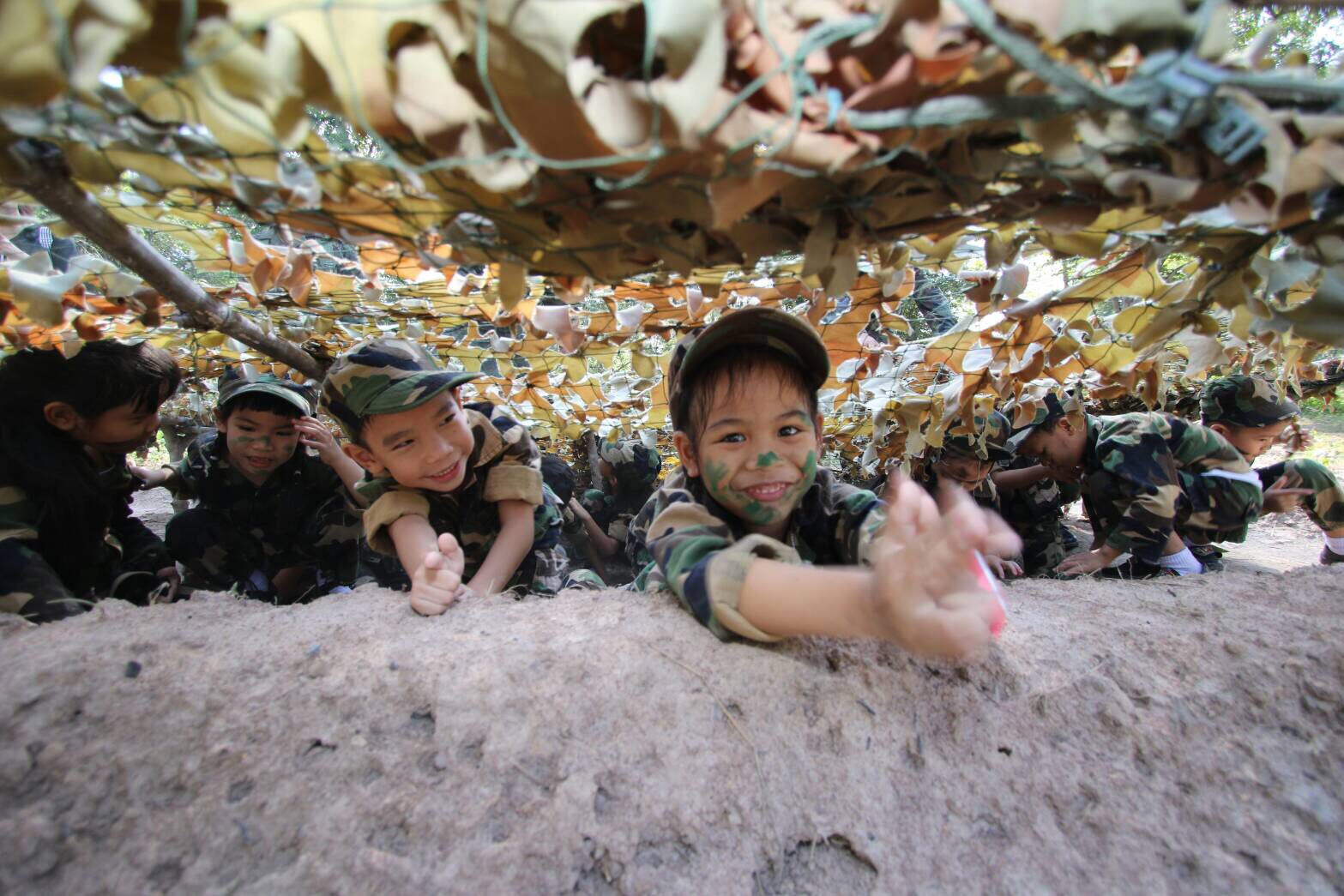 The kids, aged 5-6, spent the day learning about life as a soldier. They changed into the camouflage uniform, ate like a soldier, played in the training field, and laid on military camp beds. How adorable.