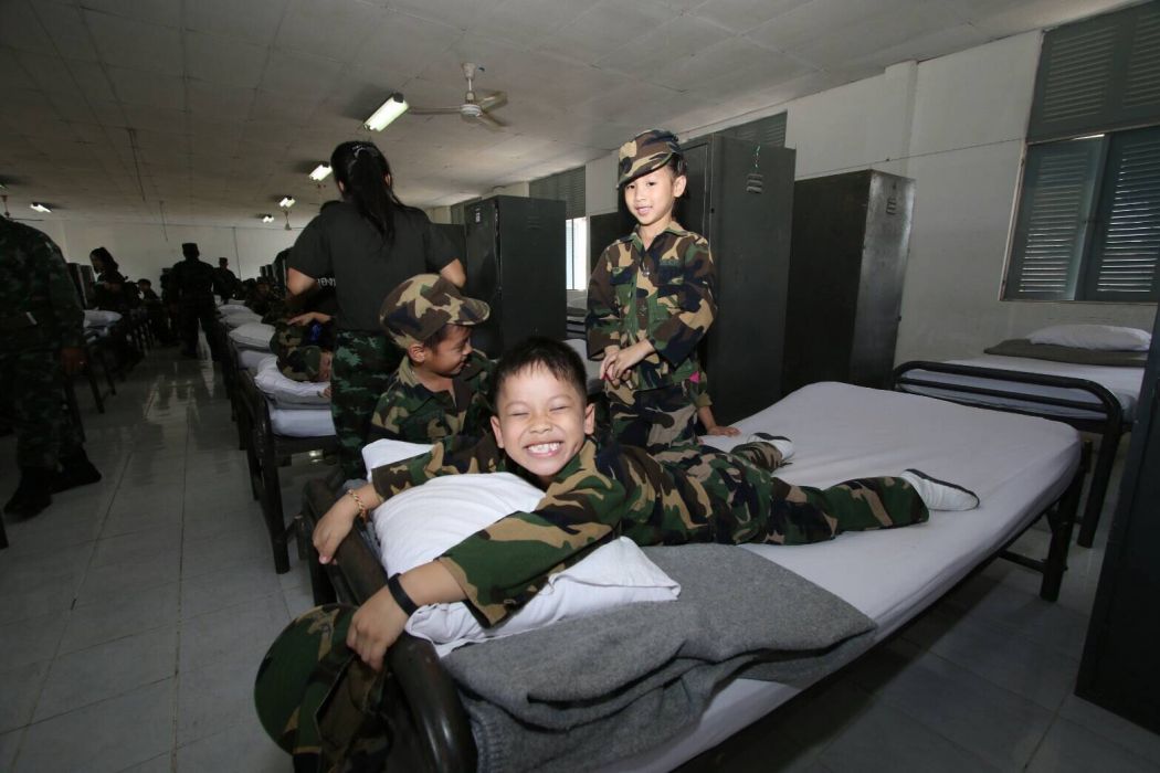Almost two hundred kindergarteners visited a military base Wednesday and learned a thing or two about military principles and “Thai values.” Yikes.